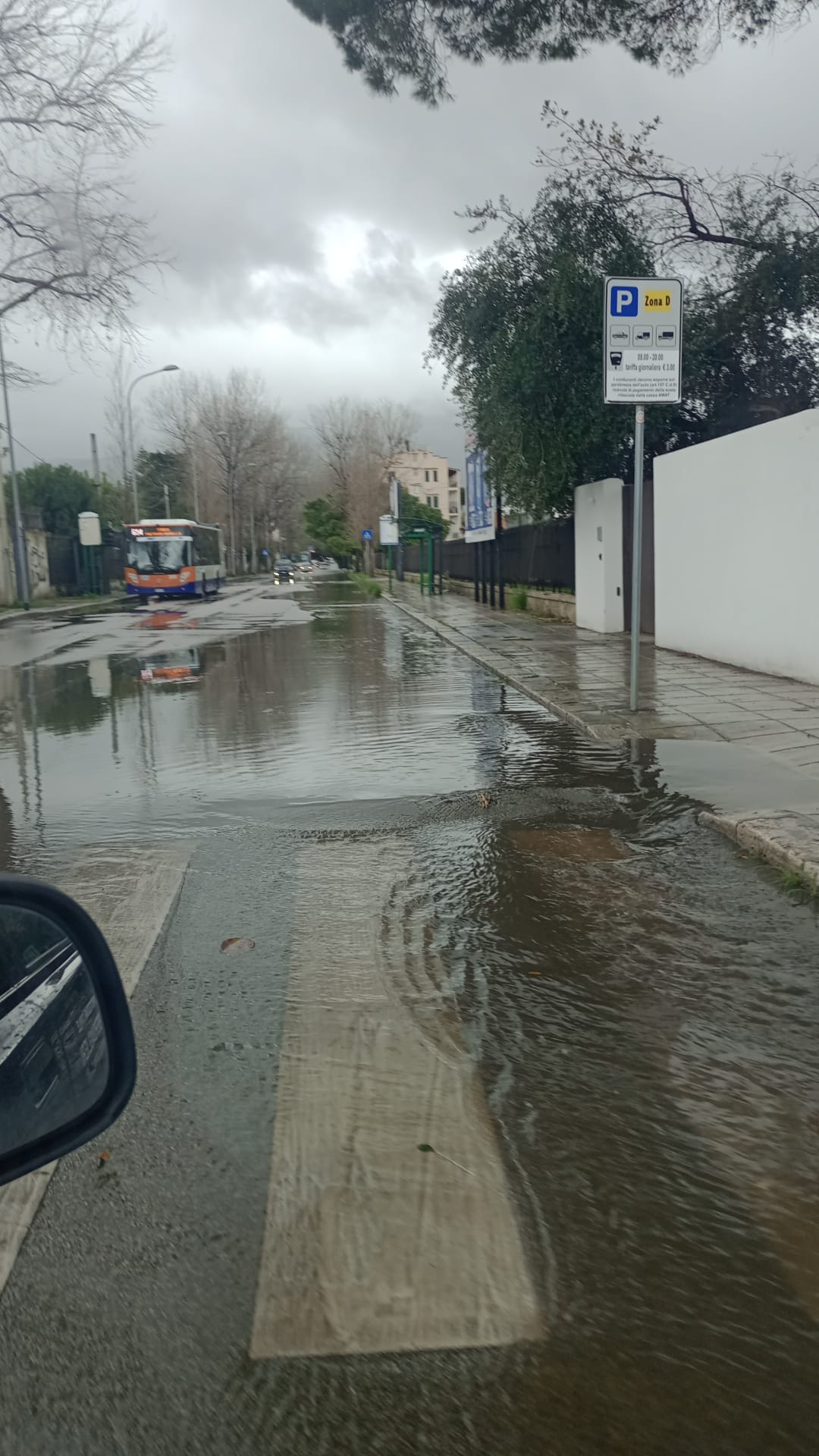 Assegnazione della Zona 1. Su richiesta del COC ci siamo spostati su San Martino Delle Scale dove la strada era interrotta causa di un albero caduto. Insieme ai funzionari del Comune di Palermo abbiamo informato i cittadini sui lavori in corso per lo sgombero della strada ad opera di squadre di Vigili del Fuoco e dell'Azienza preposta alla bonifica dell'area. Gli alberi sono stati interessati dagli incendi del 2023. Alle ore 12.30 ci siamo spostati di nuovo sulla Zona 1 mentre era in corso un violento acquazone nella zona Nord del Comune; via Nicoletti e zona GIBI Auto allagate ma percorribili; in via Polibio situazione sotto controllo. Solita situazione riscontrata nei precedenti pattugliamenti in via Galatea Parcheggio, con carreggiata allagata; ci siamo spostati sul lungomare di Mondello, Valdesi, Favorita per tornare in Sferracavallo in via P. Calandra senza alcuna criticita' da segnalare; il livello di piovosita' sempre alto ha comunque allagato la bretella esterna alla Circonvallazione dalla zona Leroy Marlin fino all'Ospedale Cervello; viabilita' ostacolata dall'acqua ma carreggiata percorribile.