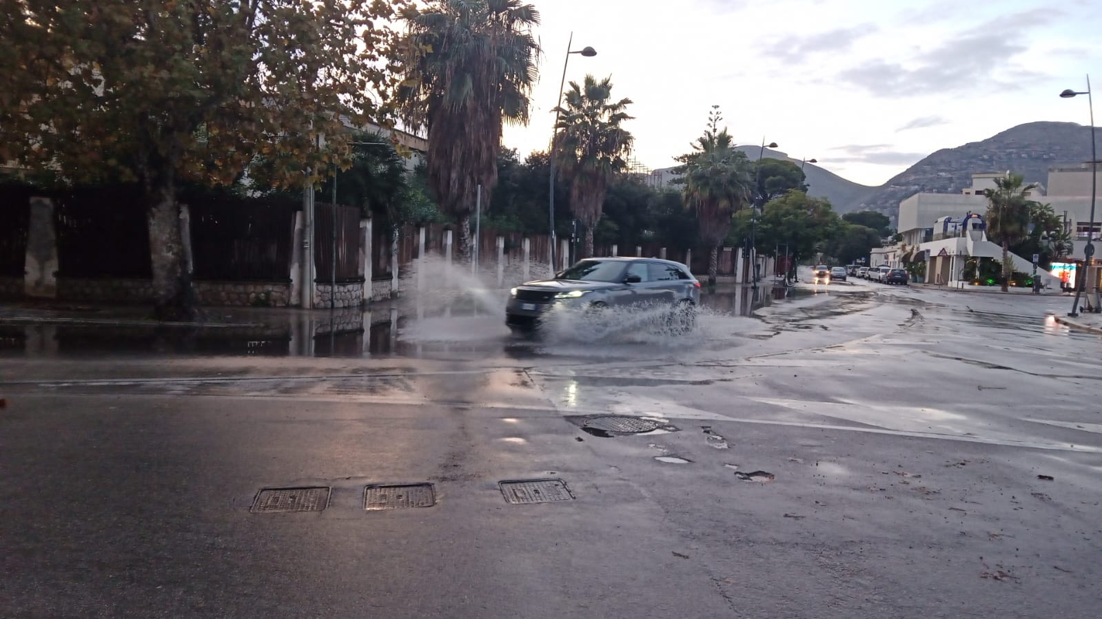 Intervento su attivazione tardiva per nubifragio verificatori in zona Nord Palermo, interessando diversi punti dove la forza dell'acqua ha causato lo spostamento dei tombini, danni alle auto. In supporto ai Vigili del Fuoco abbiamo informato gli autisti a deviare il percorso su via La Malfa, altezza Deco' Istituto Marco Polo per tombini saltati. Allagamento nella bretella che costeggia l'inizio autostrada A29, via Pietro Calandra, dove alcune auto sono rimaste bloccate; l'altezza dell'acqua ha raggiunto anche i 60cm Allagamenti diffusi in via Nicoletti, Viale Galatea lato Mondello e rotonda di Valdesi. Nulla da segnalare in via Polibio