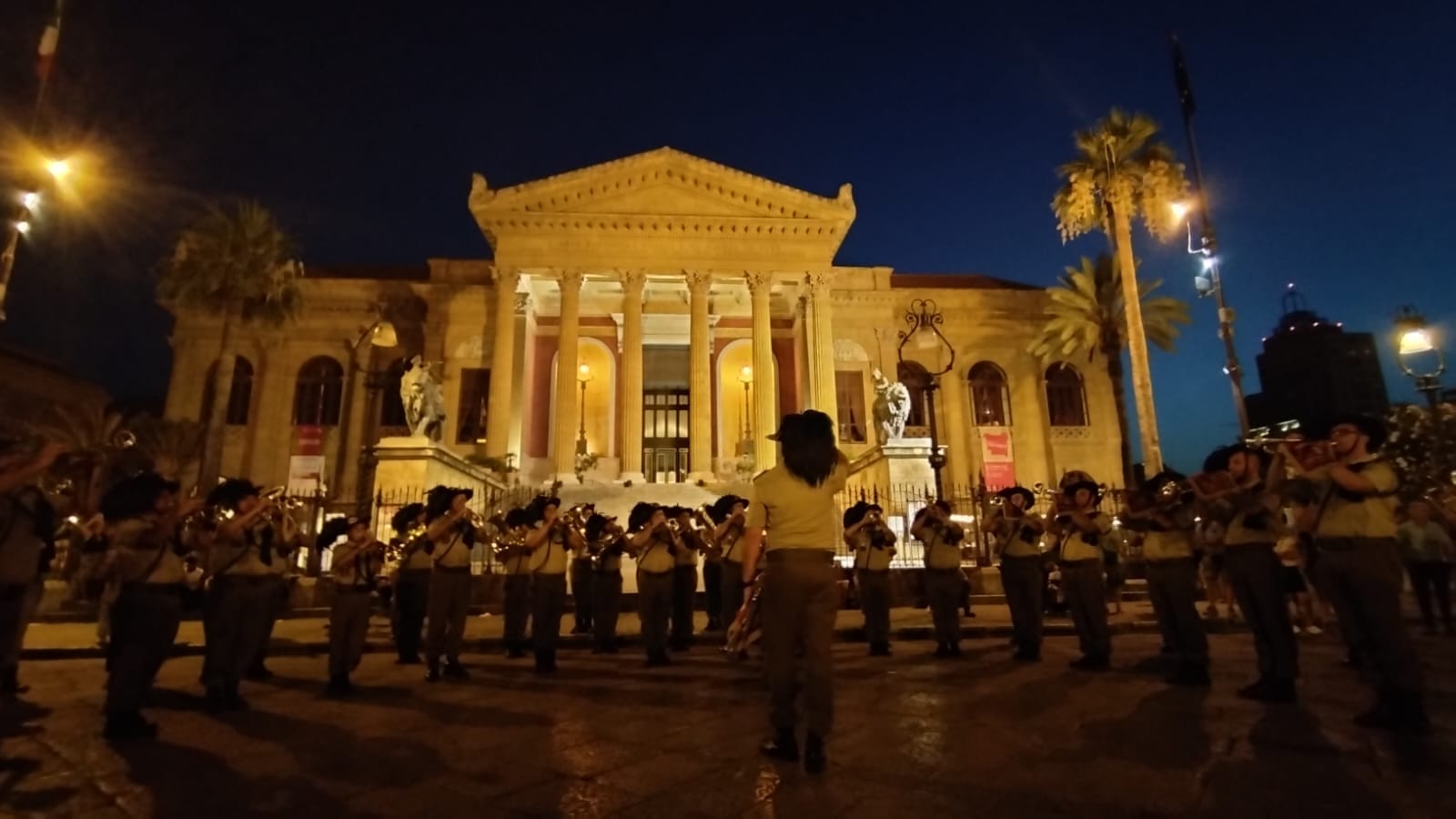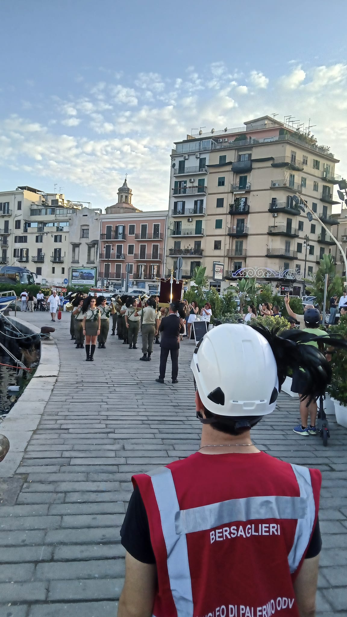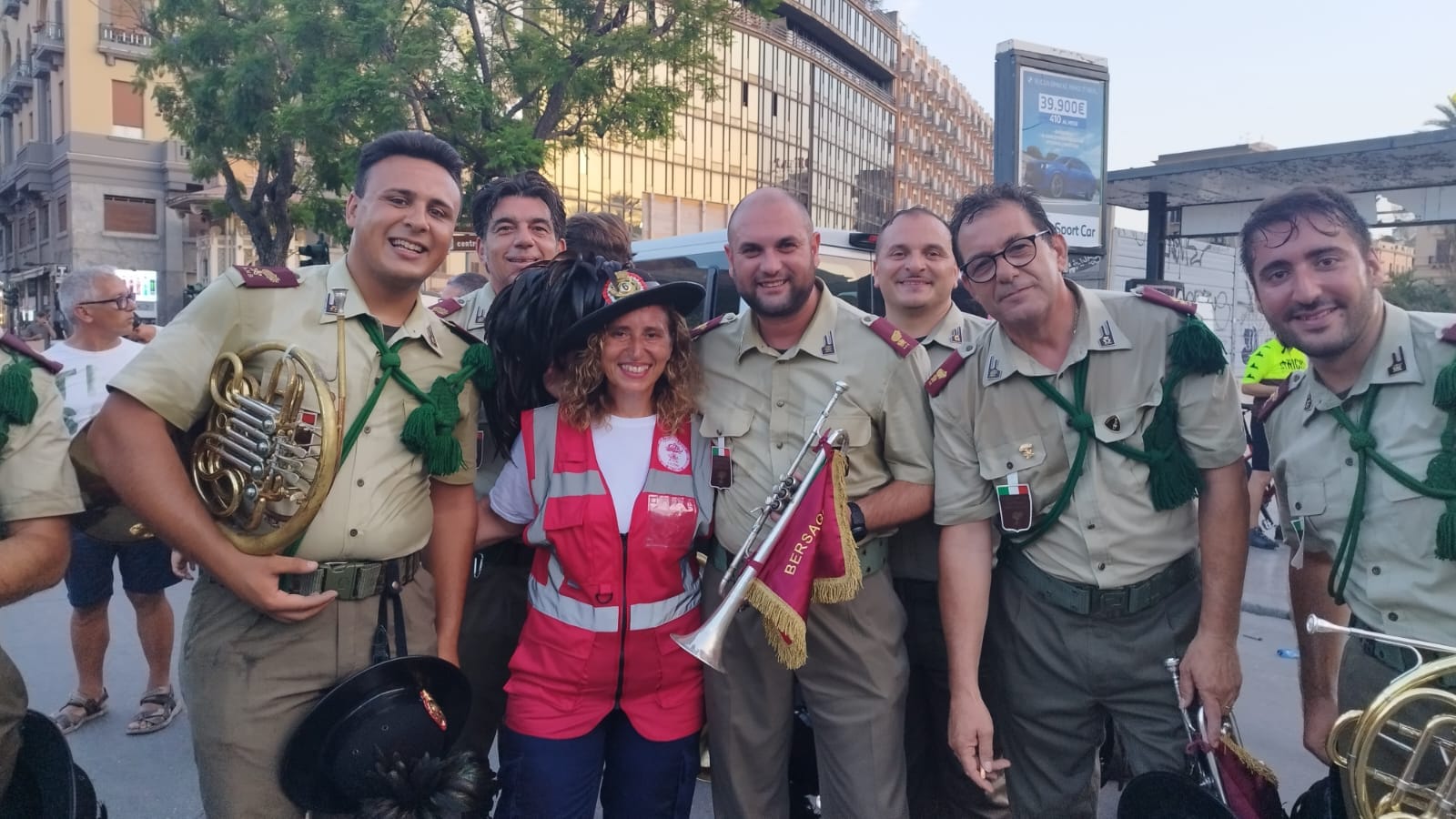 Assistenza alla popolazione durante la esibizione delle fanfare di Palermo e Casteldaccia in occasione dell'arrivo del Labaro del 100° anniversario della fondazione di Associazione Nazionale Bersaglieri