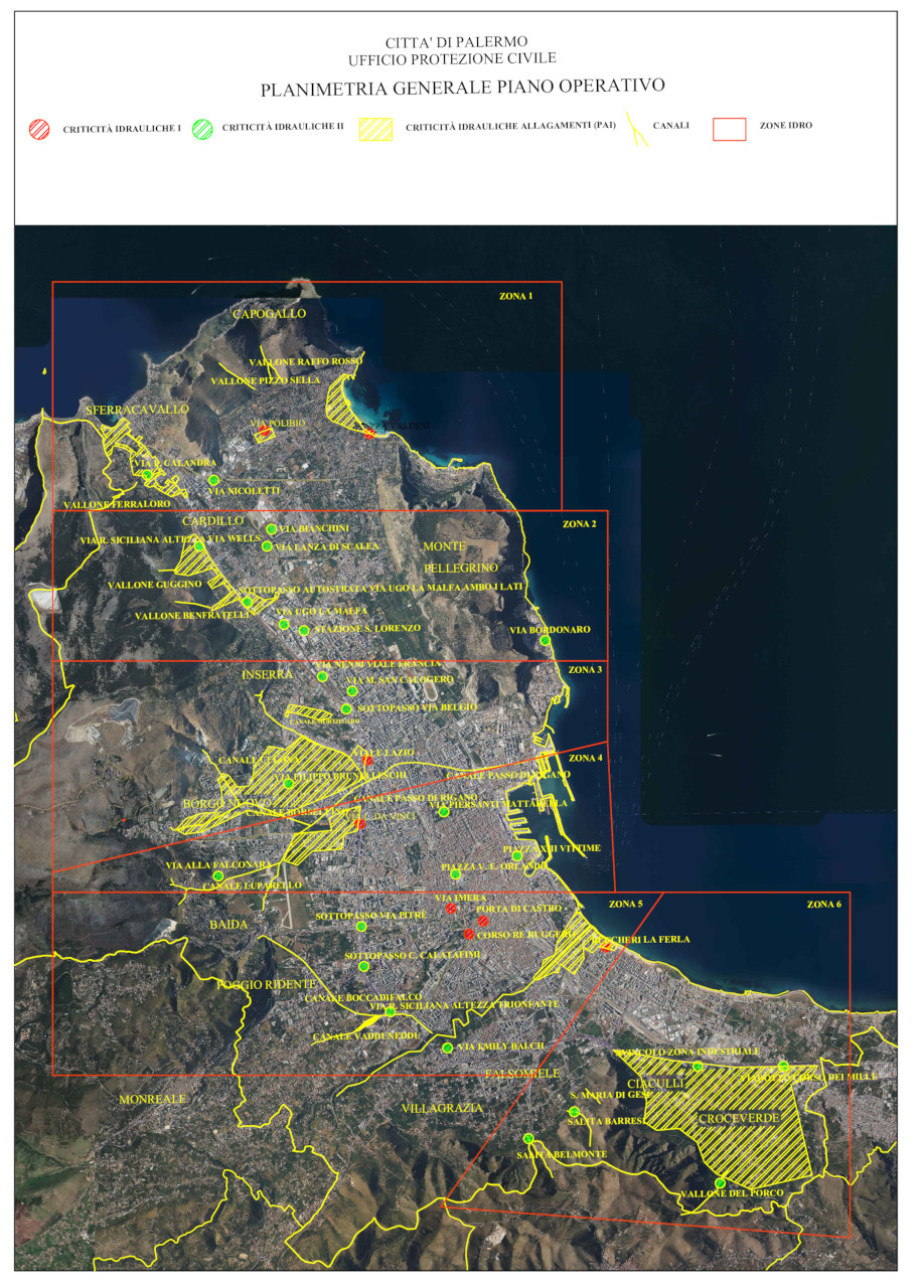Per far fronte alle emergenze di questo tipo, L'ufficio tecnico di Protezione Civile del Comune di Palermo ha suddiviso il territorio comunale in sei zone di competenza che le organizzazioni di volontariato